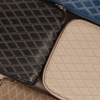 Maison Pourchet launches its famous "Madison" canvas. Dedicated to the brand's three signature colors: green, red, and navy, and referencing Pourchet's diamond-patterned quilting, this grained, printed coated canvas was originally designed for a luggage line. Today, it remains one of the Maison's signature codes and is produced in a modernized style across exclusive collections and small leather goods.