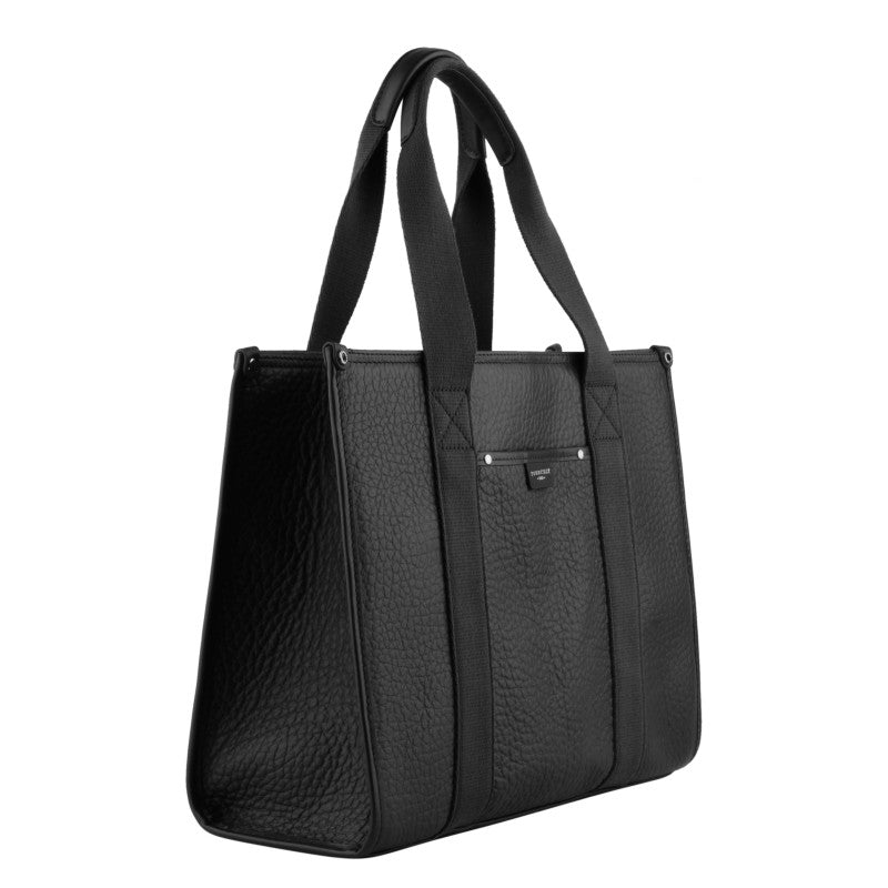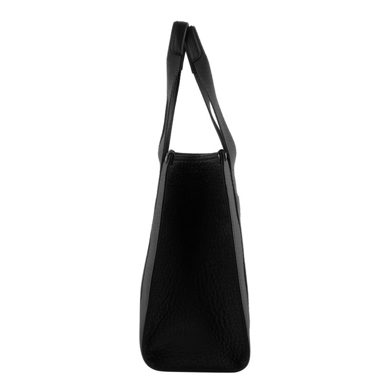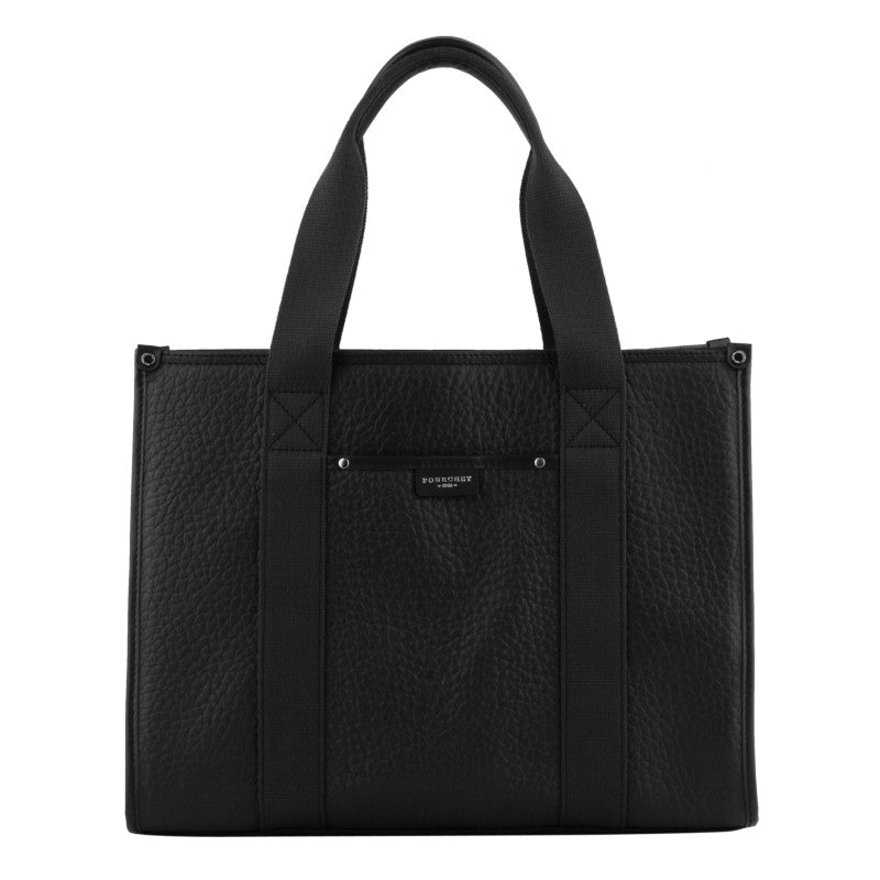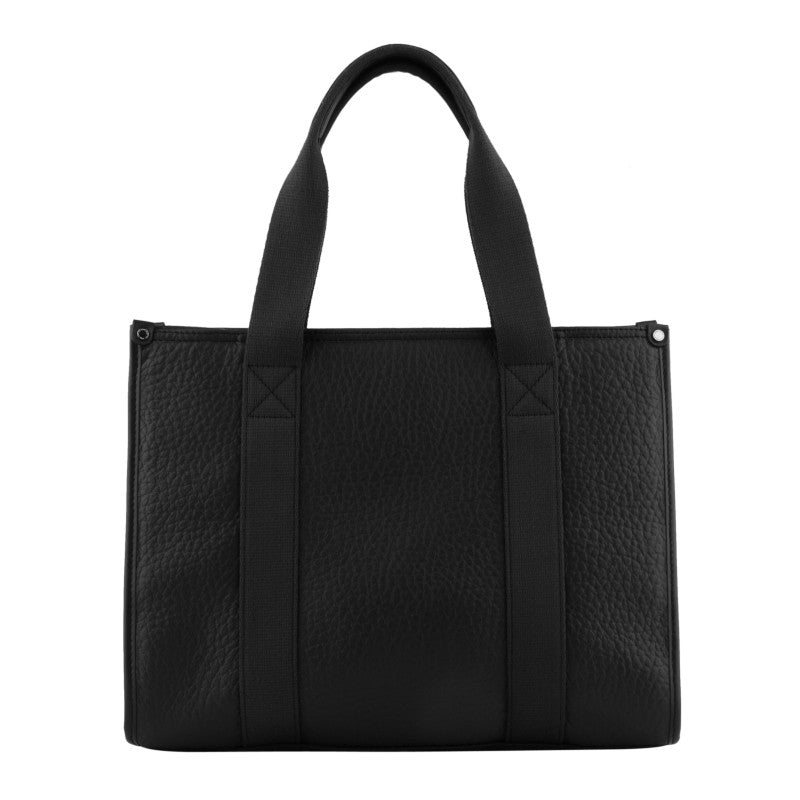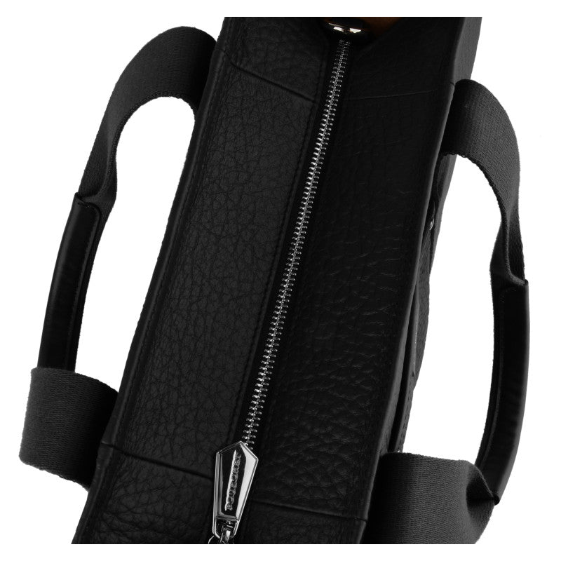 Black leather tote bag