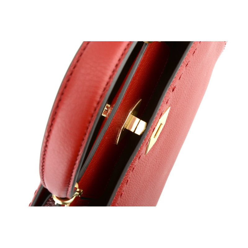 With dimensions of 34 x 26 x 11.5 cm , the bright red Trianon GM bag is perfect for formal occasions as well as for everyday use. Also available in other colors, it adapts to all styles and preferences.