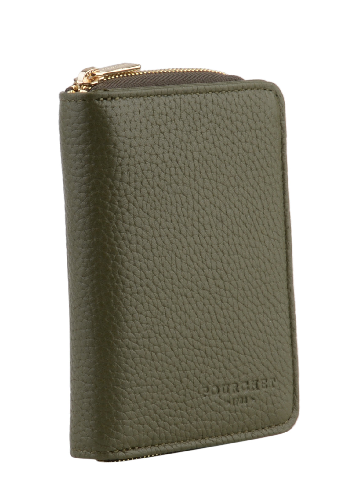 The zipper closure, embellished with gold hardware, adds a touch of elegance, while the synthetic lining provides extra protection for your cards. This wallet is perfect for women looking for an accessory that is both practical and fashionable.