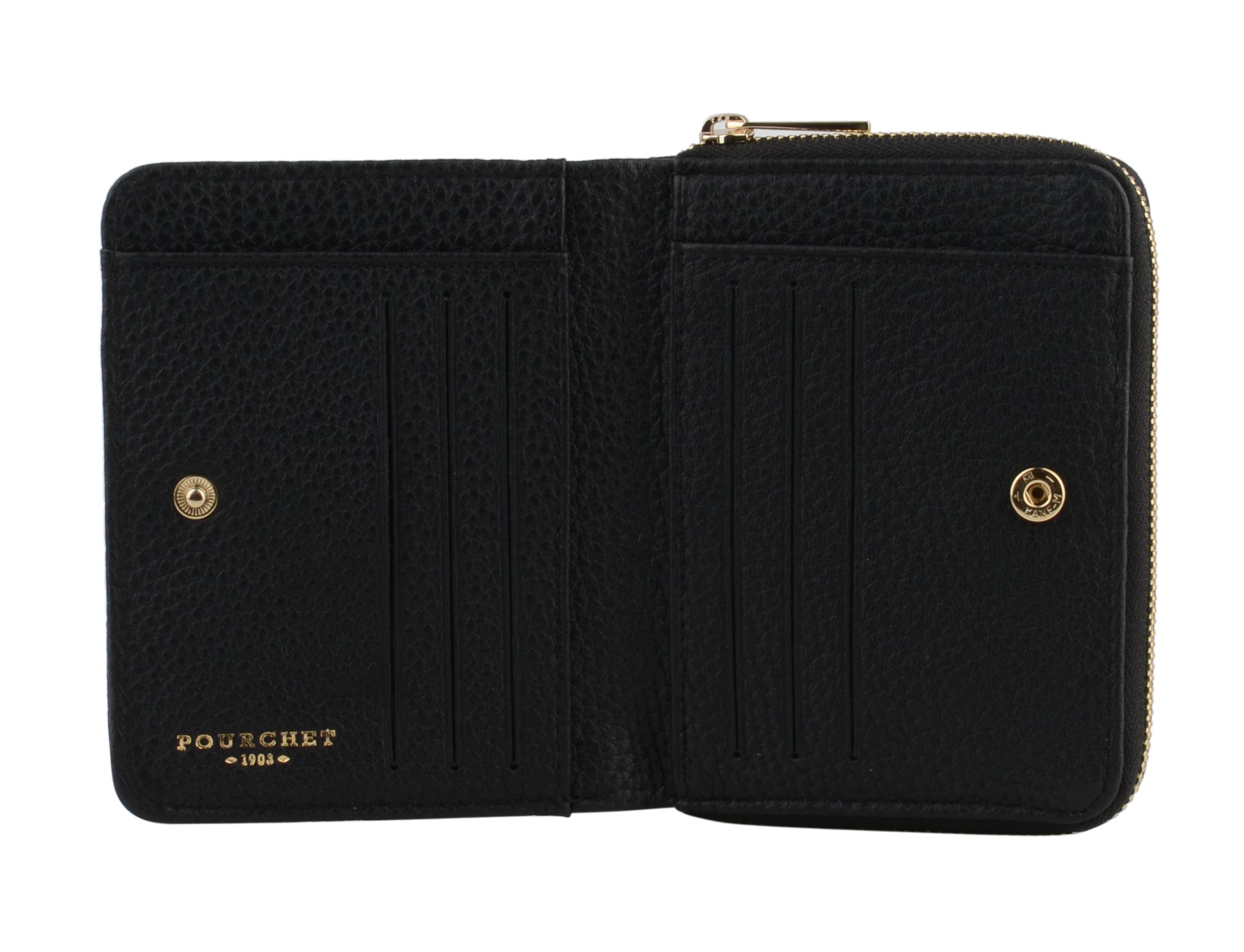 The zipper closure, embellished with gold hardware, adds a touch of elegance, while the synthetic lining provides extra protection for your cards. This wallet is perfect for women looking for an accessory that is both practical and fashionable.