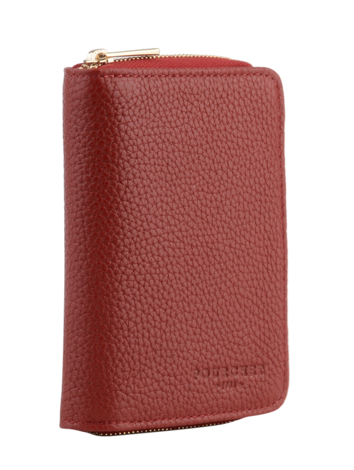 The zipper closure, embellished with gold hardware, adds a touch of elegance, while the synthetic lining provides extra protection for your cards. This wallet is perfect for women looking for an accessory that is both practical and fashionable.