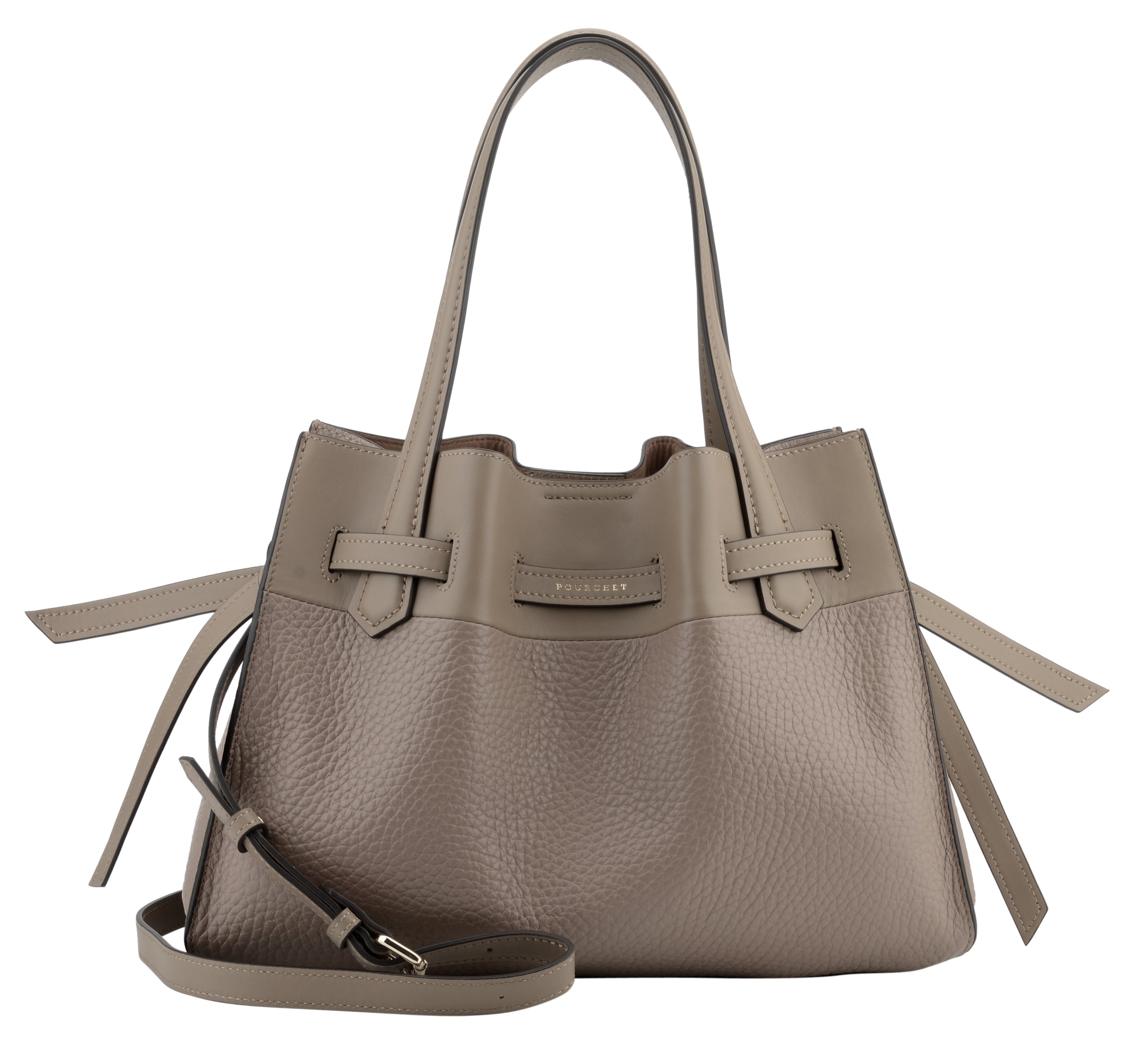 This handbag from Pourchet is a must-have accessory for the modern woman. With its putty shade, it offers a neutral and elegant look, perfect for pairing with a multitude of outfits.