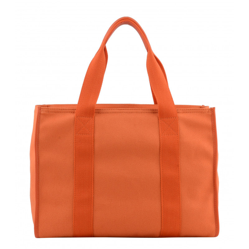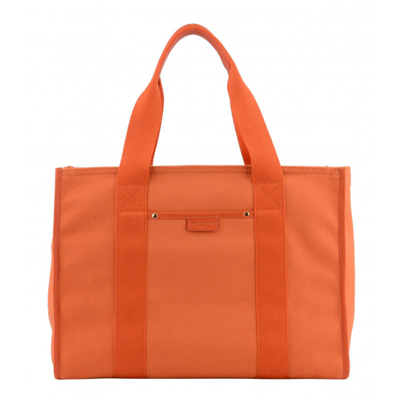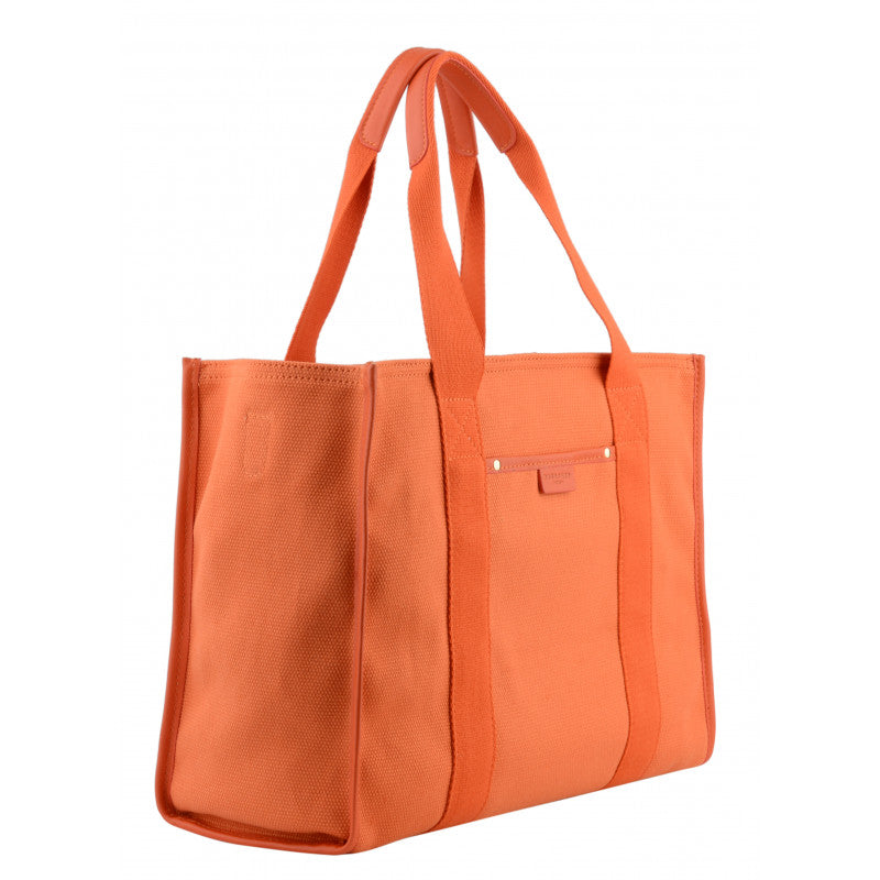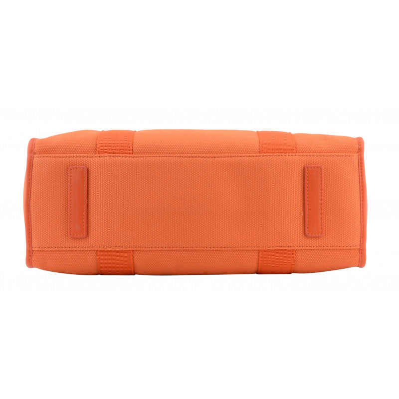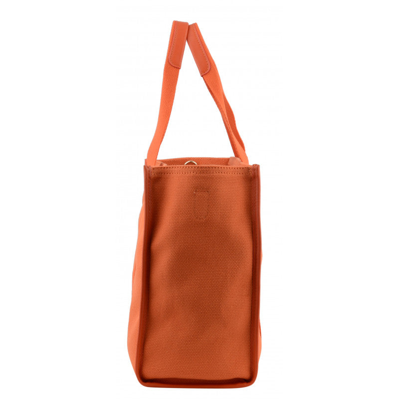 Cotton canvas tote bag with leather trim. This practical tote bag comes with a pouch for storage, as well as a handy inside-the-bag organizer or travel kit.