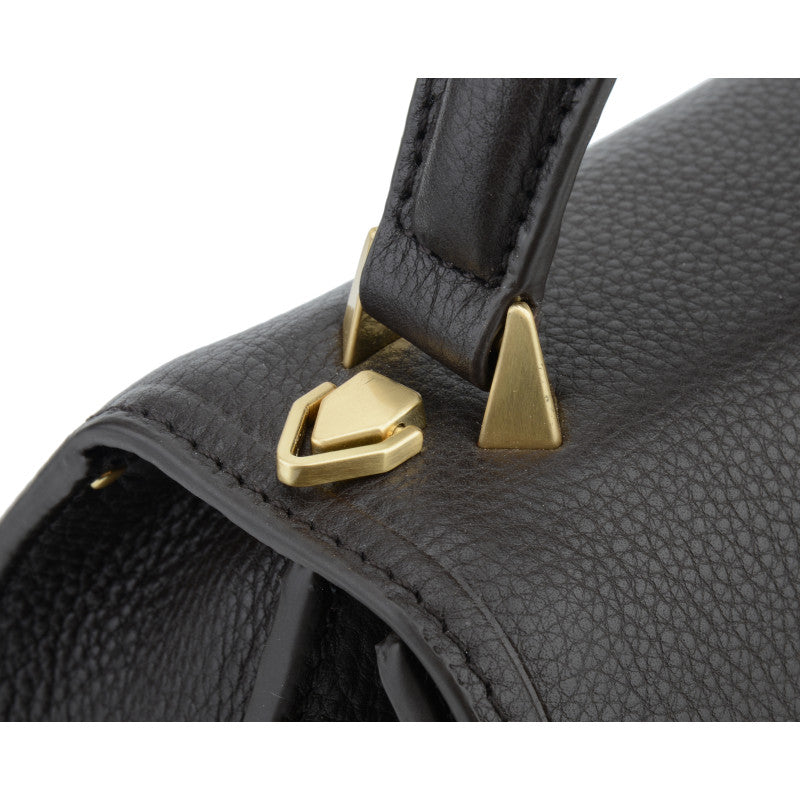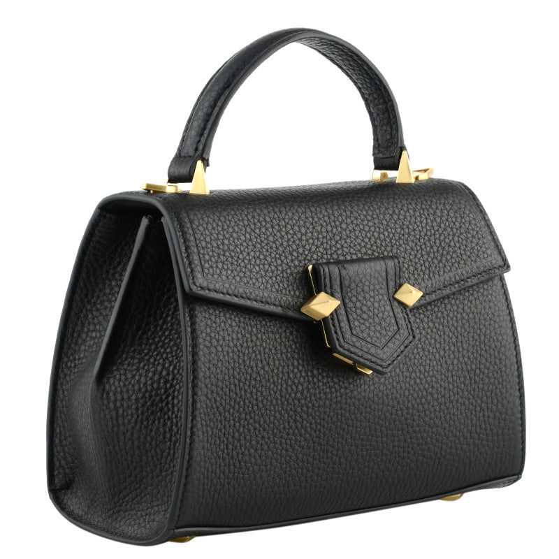 This small black handbag from the Pourchet brand stands out for its elegant and sophisticated design, ideal for everyday use or for special occasions.