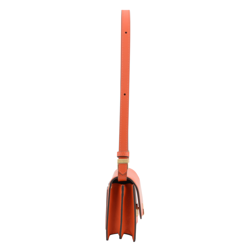 The small orange shoulder bag from Pourchet is the perfect accessory to add a touch of color to your outfit. With its bright orange color , this bag immediately catches the eye and stands out with its edges highlighted with contrasting stitching, bringing a modern dimension to its design.