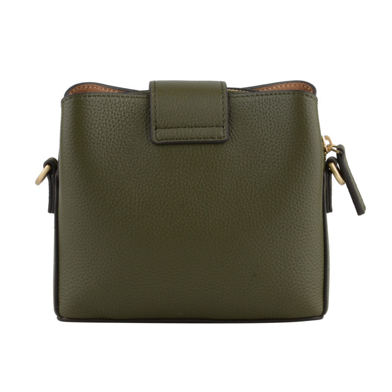 This model features a square shape with slightly rounded edges, giving it a modern and sophisticated look. It has a flap on the top, held in place by a magnetic closure , ensuring easy access to your belongings while maintaining a clean aesthetic. The interior lining, in a lighter shade, contrasts pleasantly with the exterior, adding to the bag's elegance.