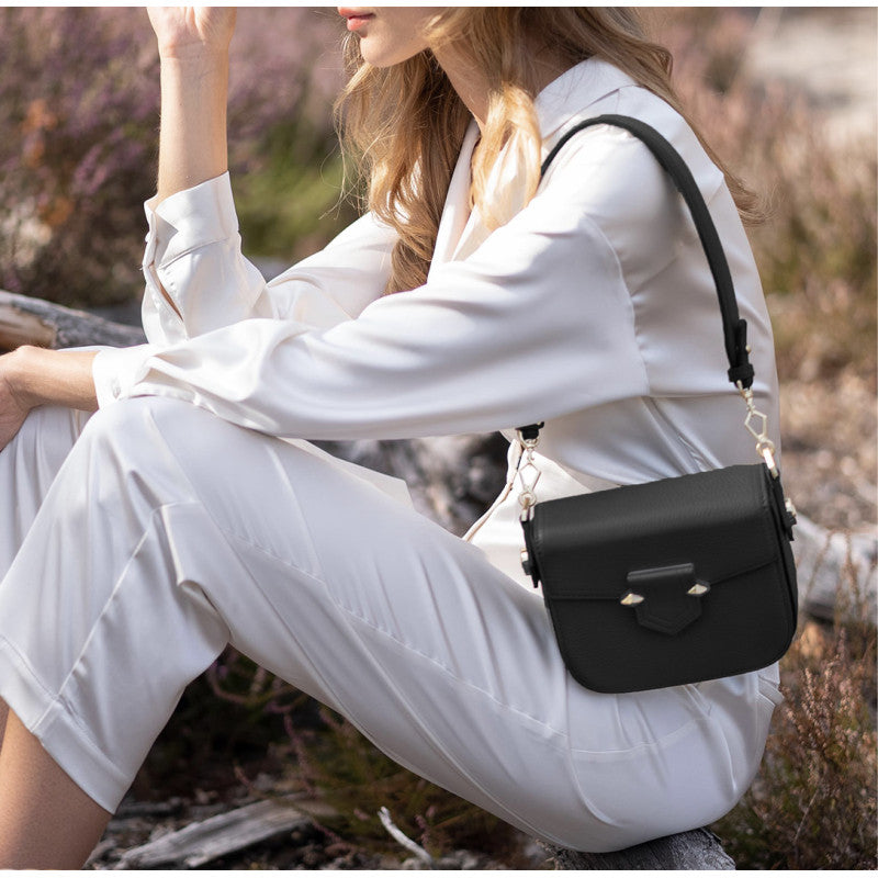 This bag is entirely black , giving it a chic and timeless look. Made from textured cowhide leather , it offers a premium finish and a pleasant feel to the touch.