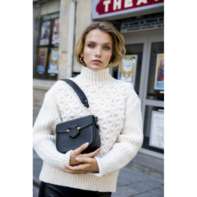 The Petit Trotteur noir from Pourchet is a must-have accessory for any woman looking for elegance and practicality. This handbag stands out with its contemporary design, perfect for everyday use or special occasions.