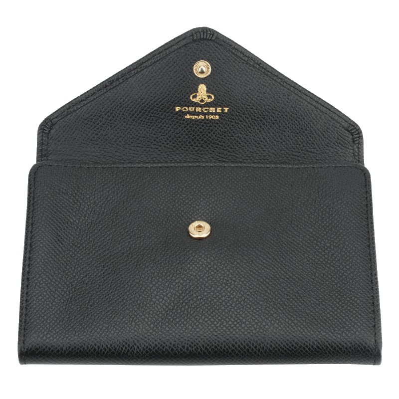 The black Cassetta flat wallet from Pourchet is a must-have accessory, combining elegance and functionality. Crafted from textured cowhide leather , it features a refined finish that guarantees both durability and style.