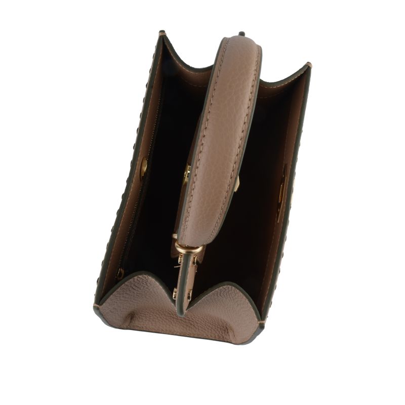 The Trianon Bicolore - PM from Pourchet is a chic and refined handbag, designed for modern women. With its combination of putty and khaki colors, this model stands out for its timeless elegance.