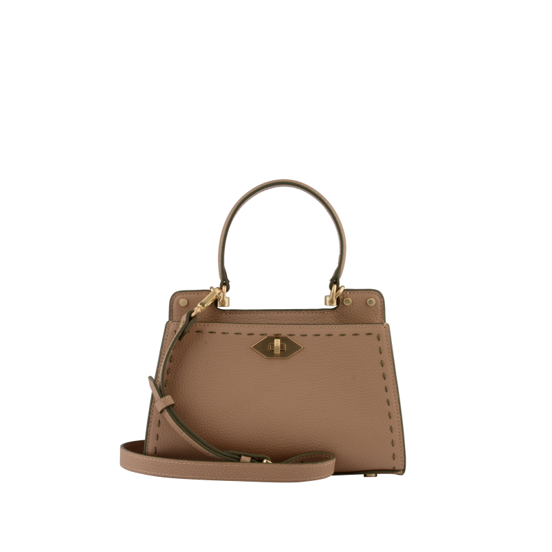 Crafted from cowhide leather , this bag offers a luxurious texture and remarkable durability. Its textured leather finish, combined with gold-tone metal details, enhances its sophisticated look.