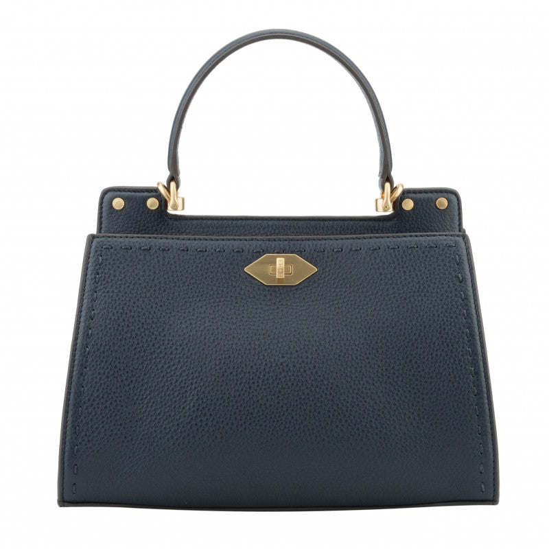 The Trianon GM navy handbag stands out for its elegance and sophistication, making it an ideal accessory for everyday wear or special occasions.