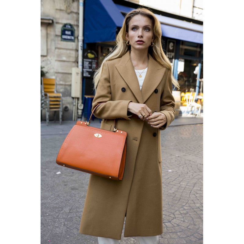 The Trianon GM (large size) is a stylish and contemporary handbag, ideal for combining style and functionality. Presented in a vibrant orange shade, this bag brings a touch of modernity and freshness to all your outfits.