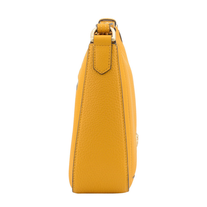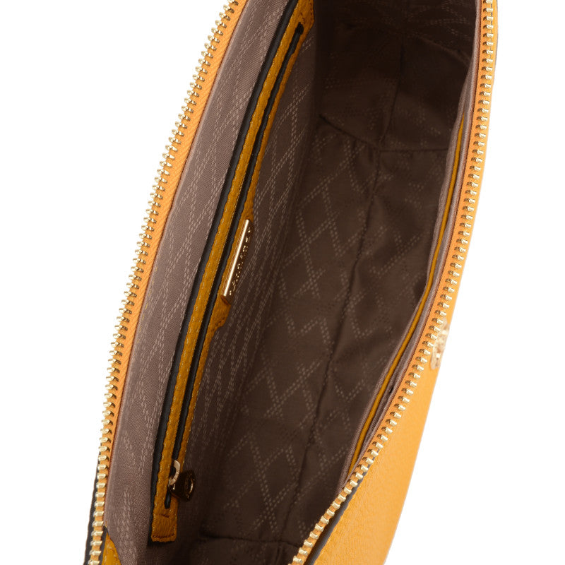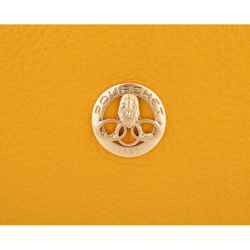 The careful finishing touches , with worked seams and edges, demonstrate Pourchet's craftsmanship. This saffron satchel is the perfect choice for those who want to combine practicality and style on a daily basis.