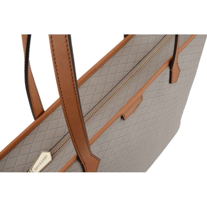 The taupe tote bag from Pourchet is a must-have accessory for combining style and practicality on a daily basis. Made from coated canvas trimmed with cowhide leather , this bag stands out with its elegant texture and diamond pattern, offering both robustness and sophistication.