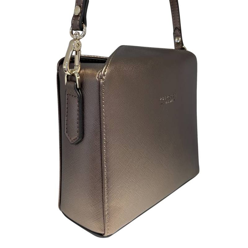 Although its main color is bronze, the bag features reflections that change depending on the light, giving it a dynamic look. This bag is an ideal choice for those looking for a practical yet stylish accessory that can adapt to different outfits and occasions.