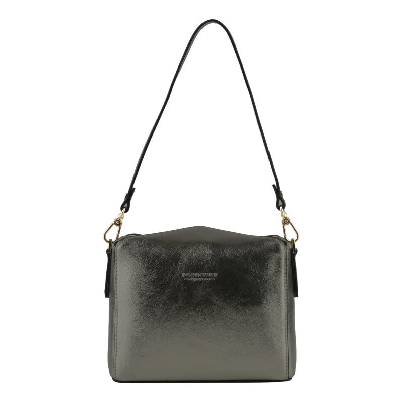 Steel patent leather shoulder bag