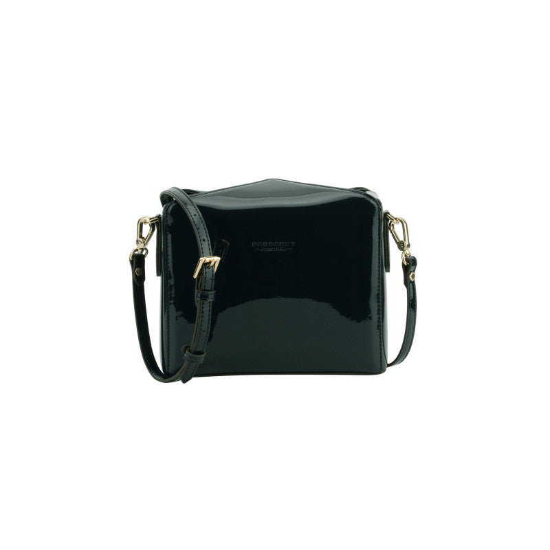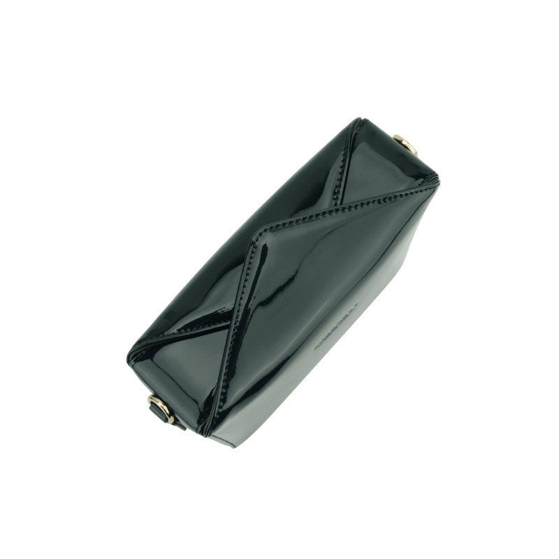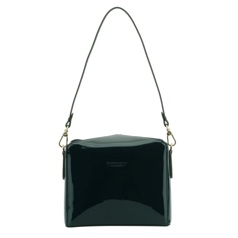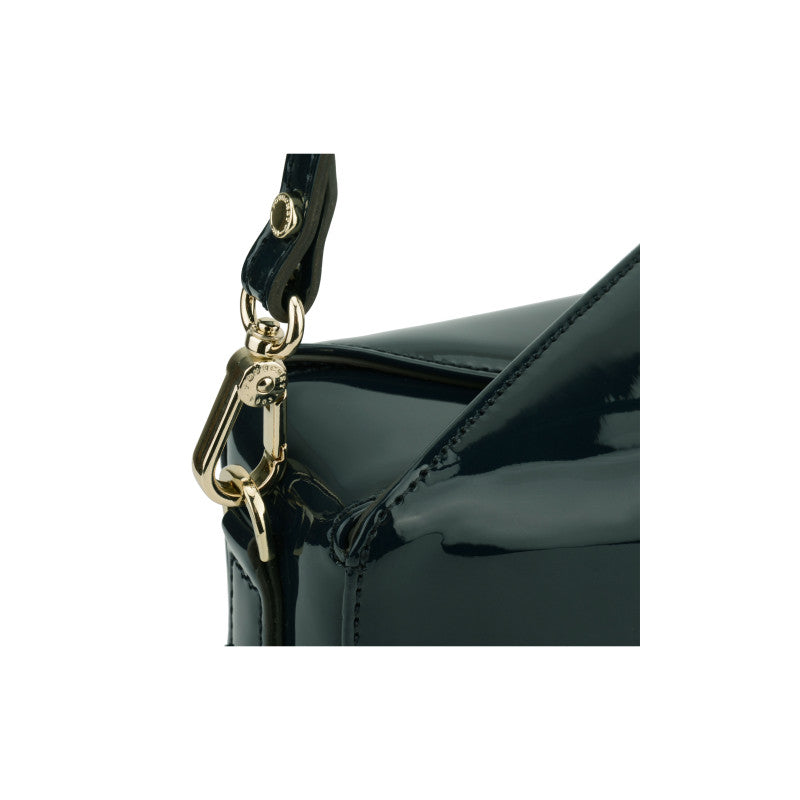 The Cassetta | Forest Varnish shoulder bag stands out for its dark green , almost black color, which evokes a natural and sophisticated atmosphere. Its lacquered finish gives it a shiny and elegant appearance, ideal for enhancing any outfit.