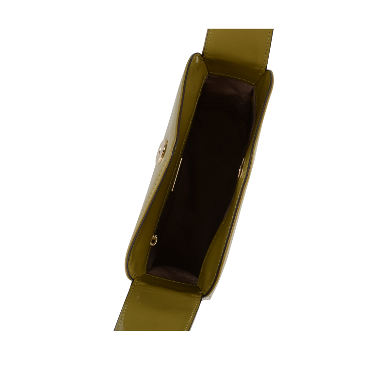 The Cassetta bag in khaki patent leather is the perfect accessory to combine style and practicality. Its shiny and smooth finish in synthetic and leather gives it a modern and elegant look. This handbag, from the Pourchet brand, is distinguished by its rectangular silhouette with slightly rounded corners, bringing a contemporary touch to your look.