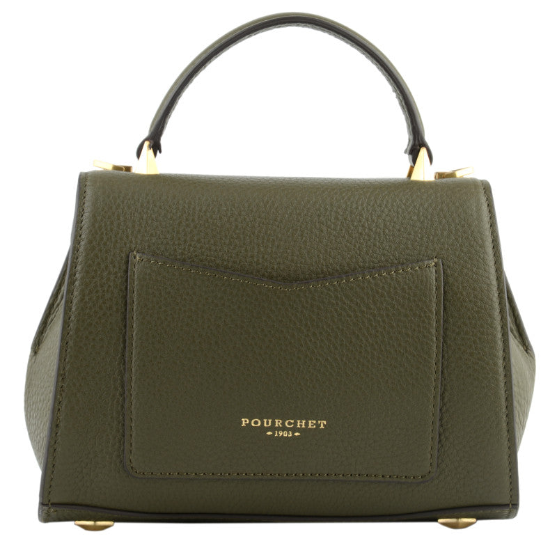 This small khaki bag from Pourchet is the perfect accessory for any occasion. With its compact dimensions of 21 x 16 x 11 cm , it is designed to carry the essentials while remaining elegant. Its refined design is distinguished by clean lines and a slightly rounded shape, offering a modern and sophisticated look.