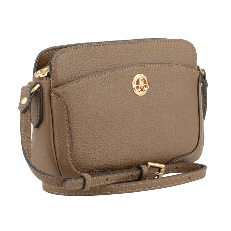 This taupe crossbody bag from Pourchet is the perfect accessory for modern women looking for elegance and practicality. Its neutral yet refined taupe shade easily pairs with a multitude of outfits.