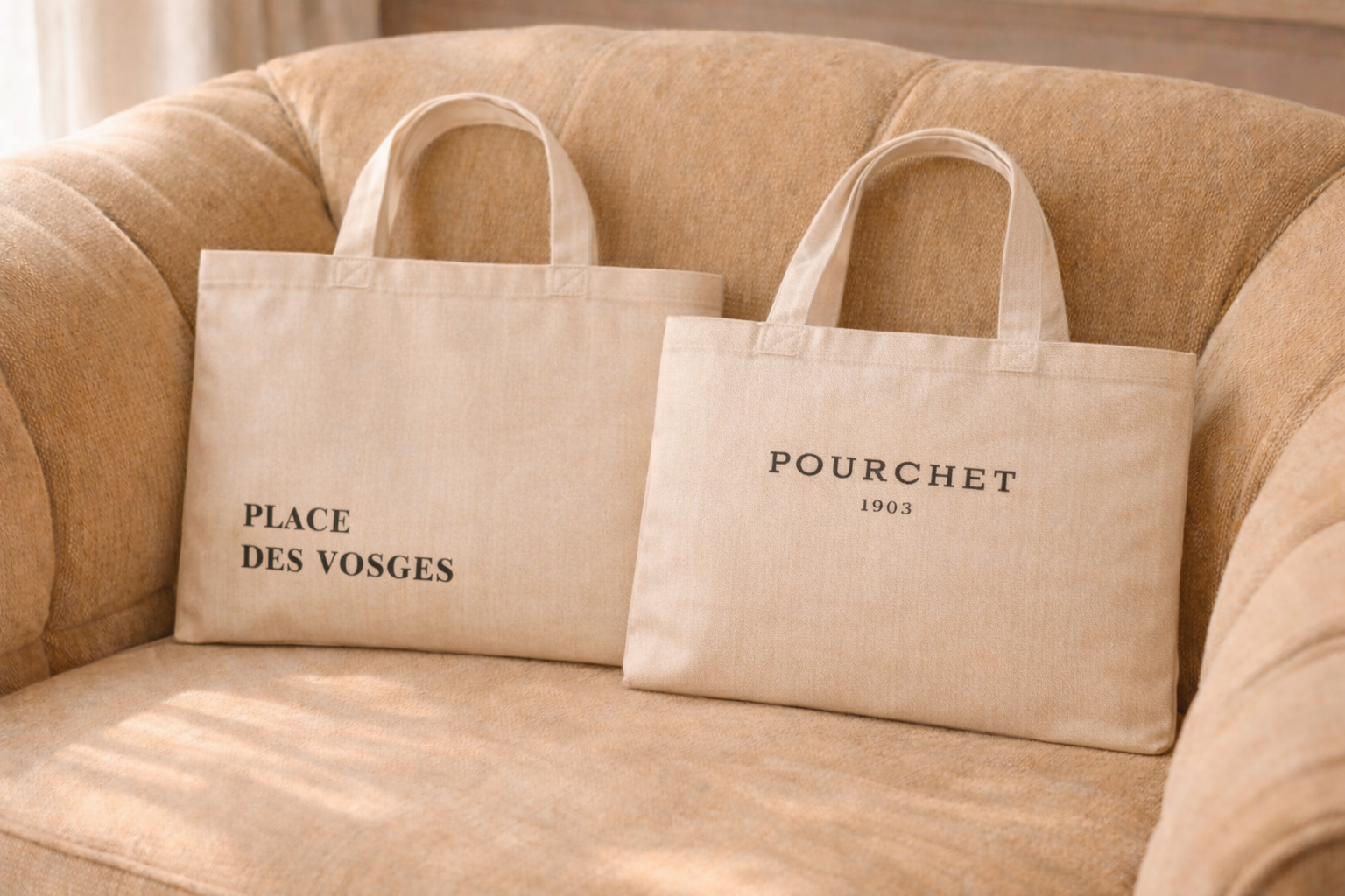 Le tote bag Numero 2 en coton "Pourchet Place des Vosges" est l'indispensable à avoir dans son sac ou bien pour protéger votre sac en cuir.