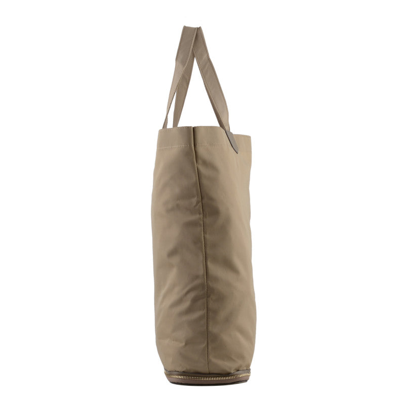 The bag's design is classic, with a tote shape and two nylon handles for optimal comfort, whether carried by hand or over the shoulder. The zipper at the base of the bag adds extra security for your belongings. Additionally, leather details adorn the ends of the handles, adding a touch of sophistication.