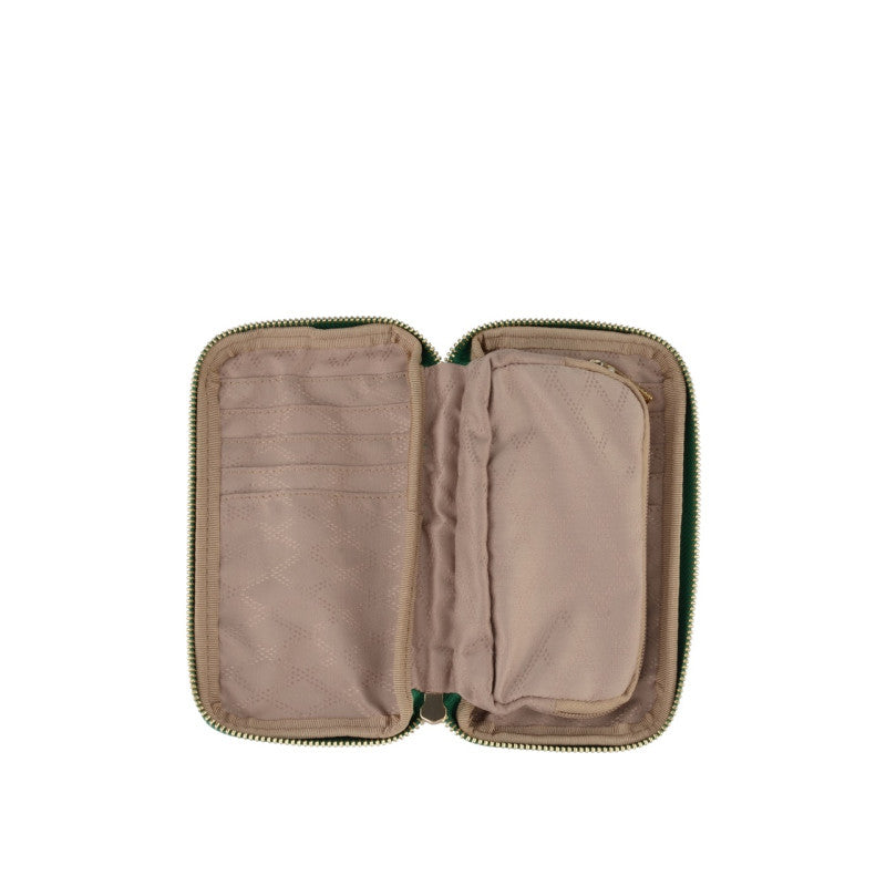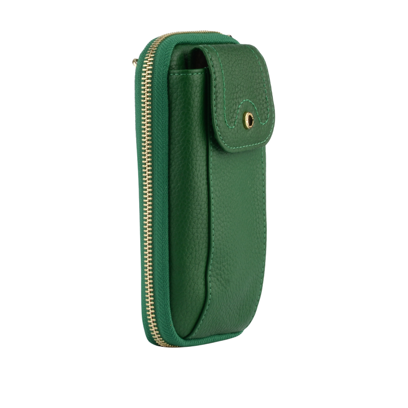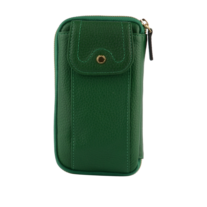 L'étui portable Émeraude est un accessoire à la fois élégant et pratique, conçu pour transporter vos essentiels avec style. Fabriqué en cuir de veau grainé, cet étui se distingue par sa couleur émeraude, une teinte riche et profonde qui ajoute une touche de sophistication à votre tenue.