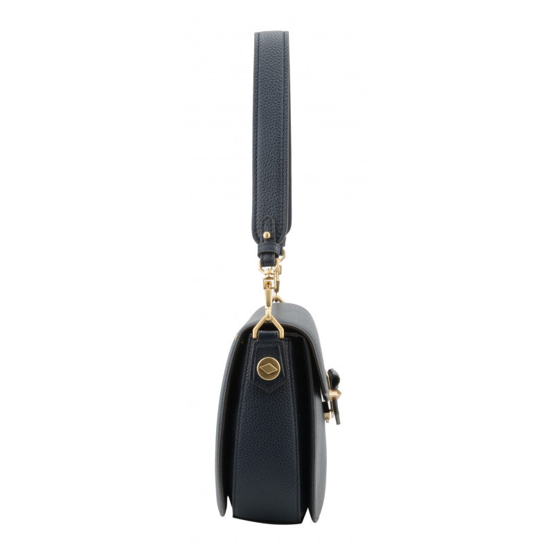 Doté d'un rabat fermé par un fermoir décoratif en métal doré, le Grand trotteur marine se distingue par ses détails raffinés. Les attaches en métal doré et les coins renforcés rehaussent l'ensemble, apportant une brillance subtile.