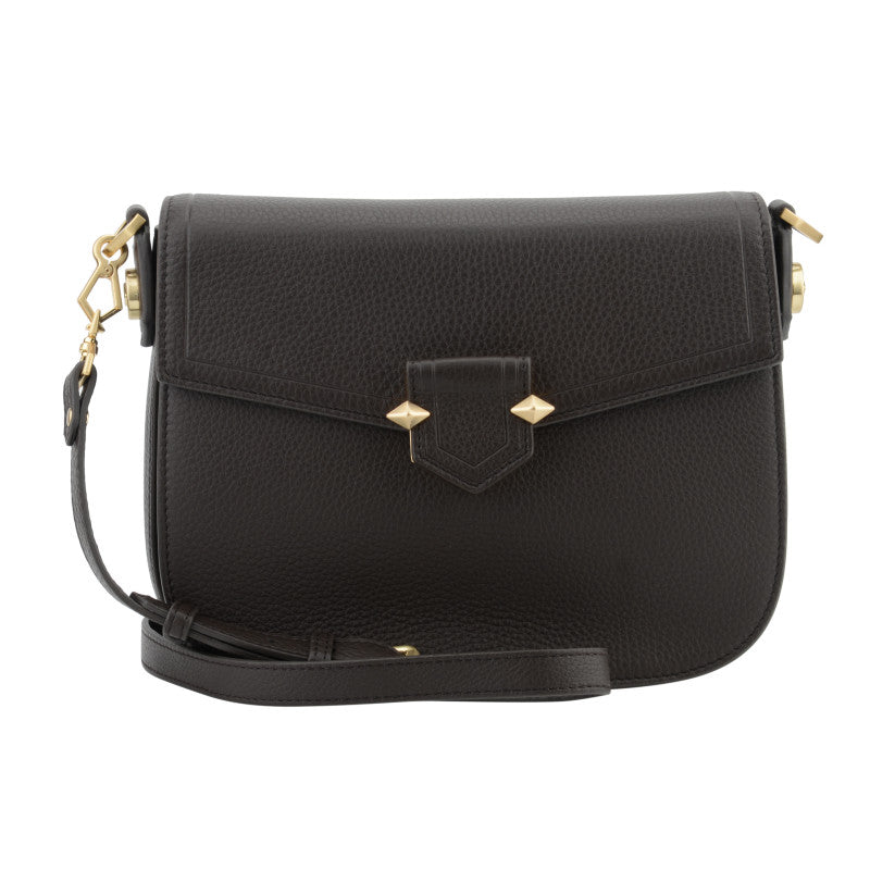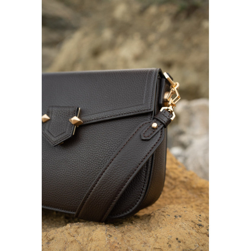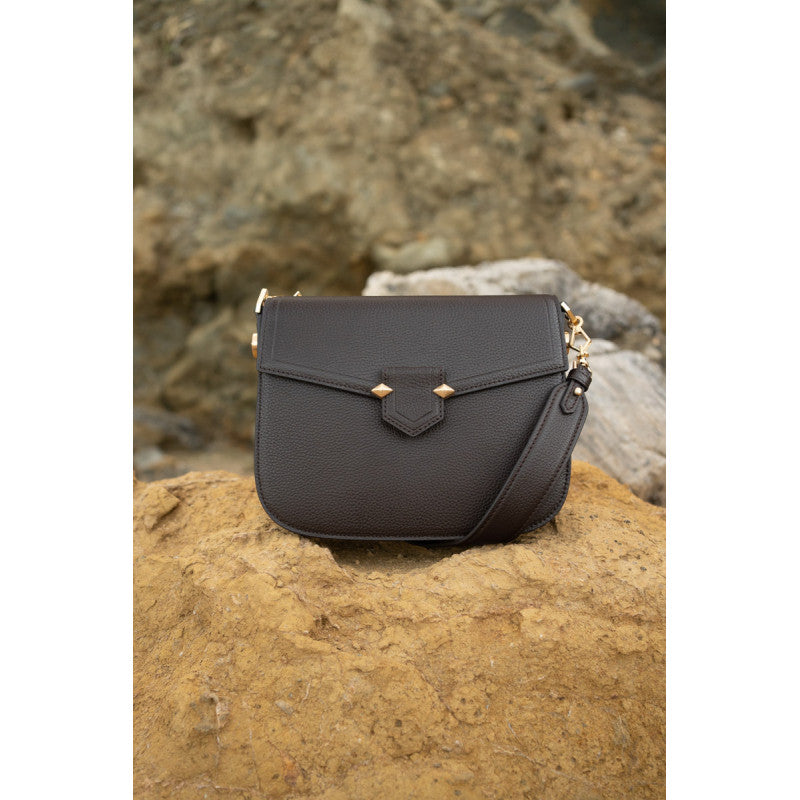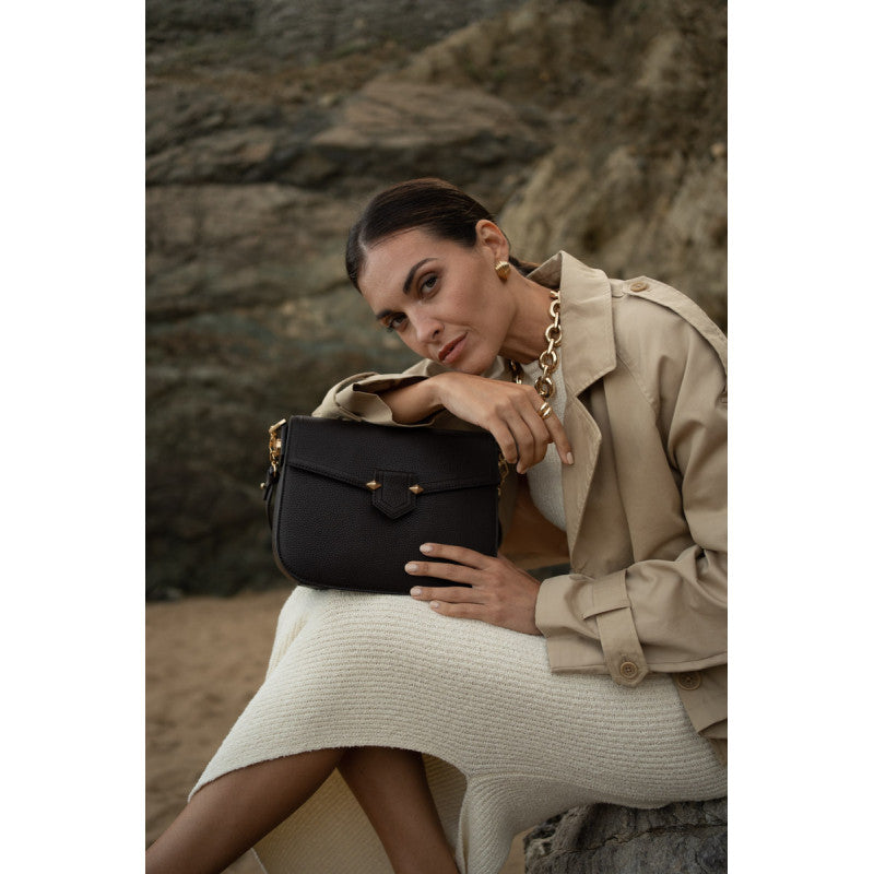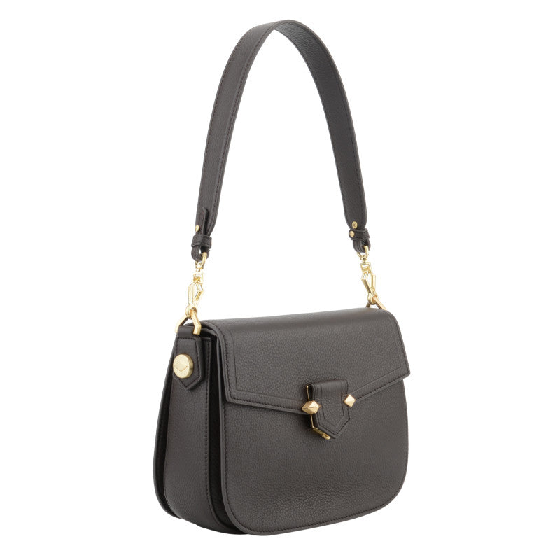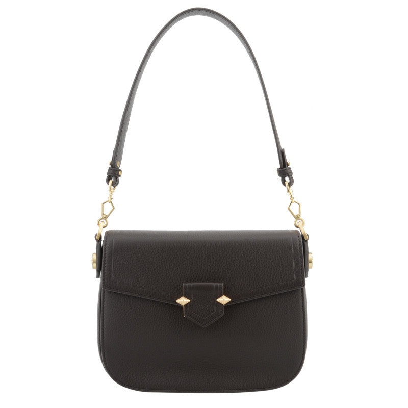 - Détails en métal doré : Le sac est orné de fermoirs et d'attaches en métal doré qui contrastent élégamment avec le cuir.