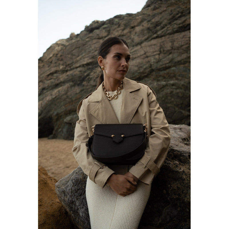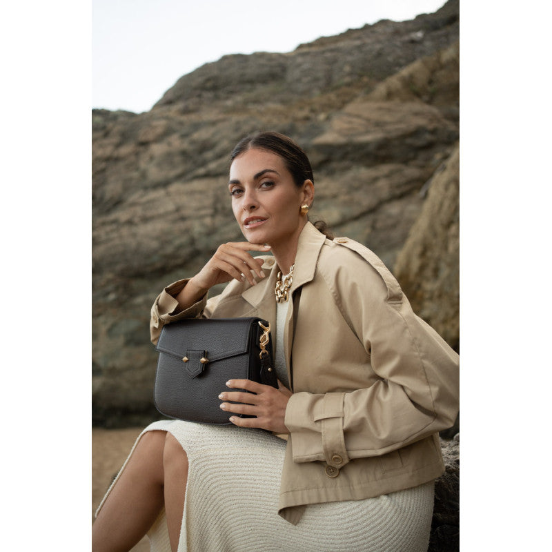 Fabriqué en cuir de vachette texturé, ce sac présente une finition de haute qualité qui ajoute une touche de luxe à votre tenue. Sa silhouette structurée, avec des lignes douces, lui confère une esthétique moderne tout en restant fonctionnel.