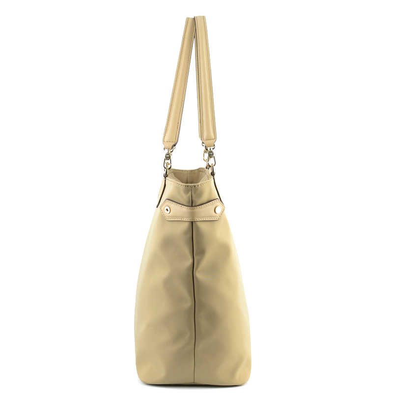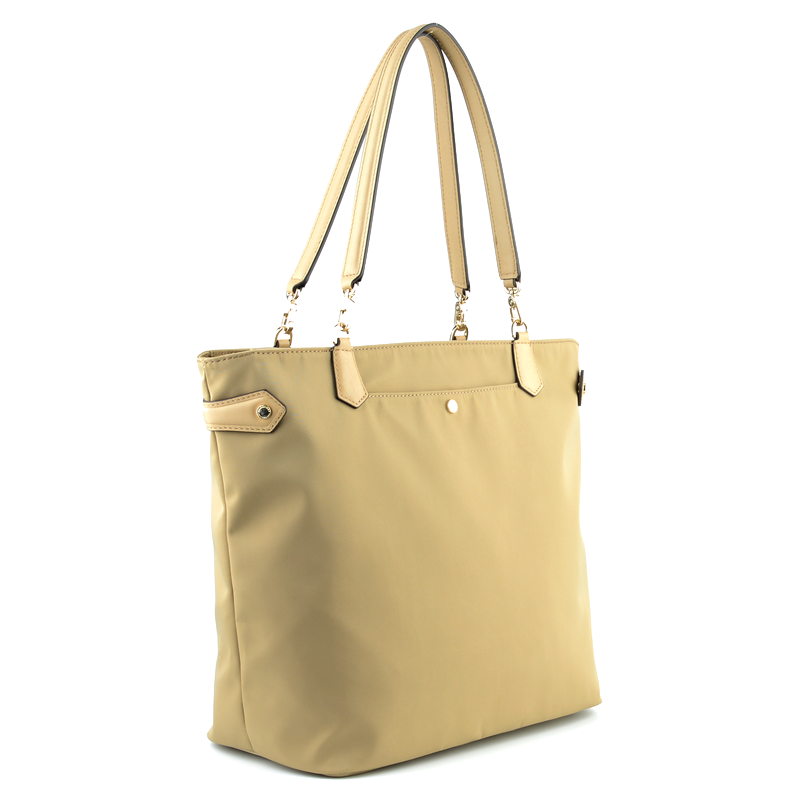 Les anses longues de couleur taupe assurent un porté épaule confortable, tandis que les détails en cuir ajoutent une touche de sophistication à son design. Les éléments décoratifs tels que les rivets et les coutures apportent du caractère à ce sac, le rendant non seulement pratique mais aussi stylé.
