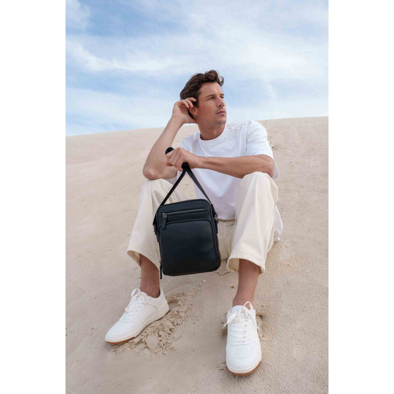 Le sac "Loic" est équipé d'une bandoulière réglable, permettant de le porter confortablement en travers du corps. Il dispose également de plusieurs poches, dont :