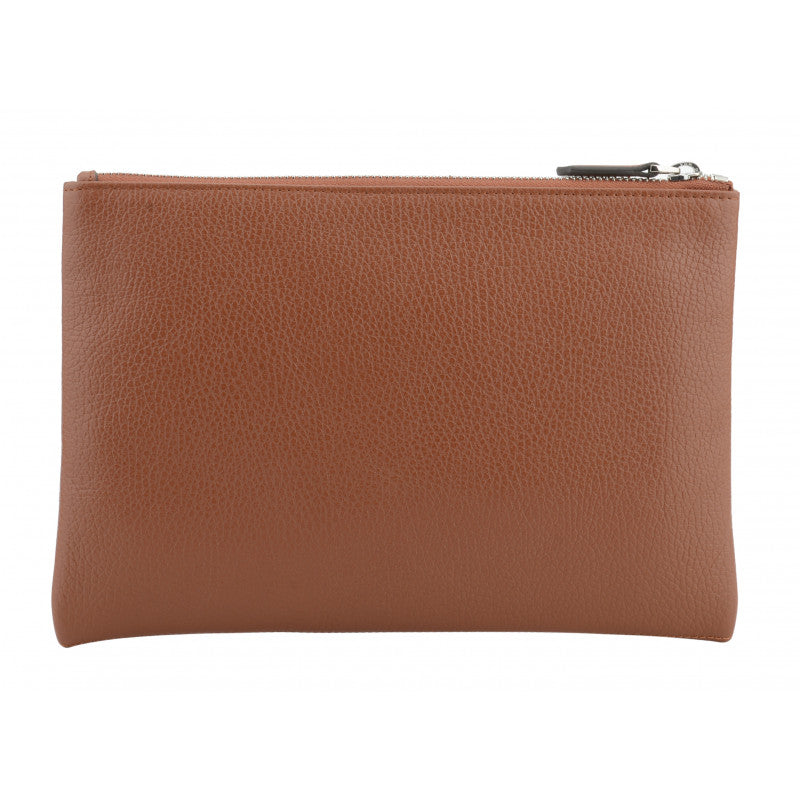 Le logo de la marque est subtilement embossé en argent sur le devant, ajoutant une note de sophistication sans être trop voyant. Que vous choisissiez de la porter à la main ou de la glisser dans un sac plus grand, cette pochette s'adapte à toutes les occasions, qu'elles soient quotidiennes ou plus habillées.