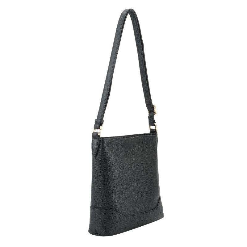 Ce modèle est équipé d'une anse ajustable, permettant de le porter en travers ou à l'épaule selon vos préférences. Les attaches en métal doré apportent une note de sophistication supplémentaire. La fermeture principale est zippée, garantissant la sécurité de vos effets personnels, tandis qu'un compartiment zippé à l'arrière offre un espace supplémentaire pour les objets que vous souhaitez garder à portée de main.