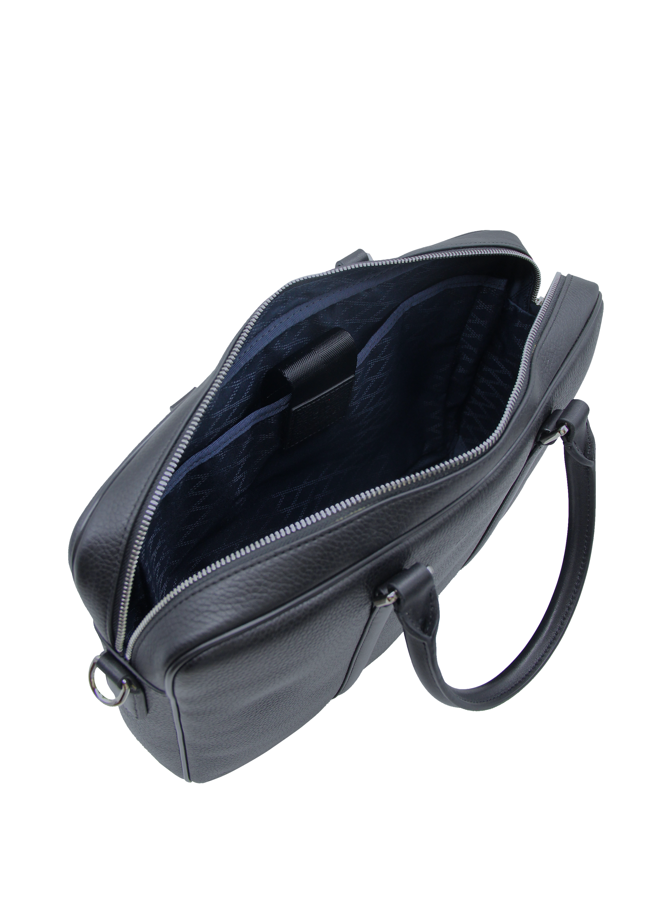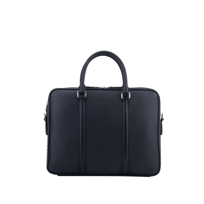 Conçu en cuir texturé, ce porte-documents allie robustesse et style. Sa forme rectangulaire avec des bords légèrement arrondis lui confère un aspect moderne et épuré. Il est équipé de deux poignées supérieures pour un transport facile à la main.