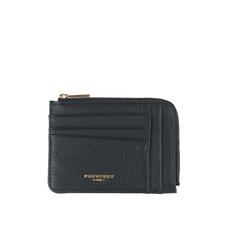 Le porte-monnaie/carte plat marine de la marque Pourchet est l'accessoire idéal pour allier élégance et fonctionnalité. Conçu en cuir de vachette texturé, ce modèle se distingue par sa durabilité et son allure raffinée.