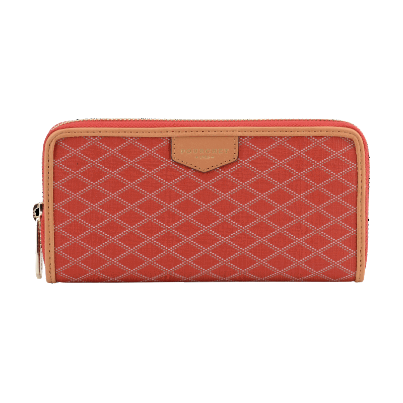 Ce modèle, dédié à la femme, est fabriqué en France, garantissant un savoir-faire de qualité. Les finitions en cuir beige contrastent agréablement avec la toile rouge, ajoutant une note de sophistication à cet accessoire de petite maroquinerie.