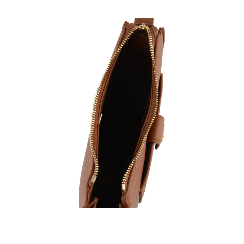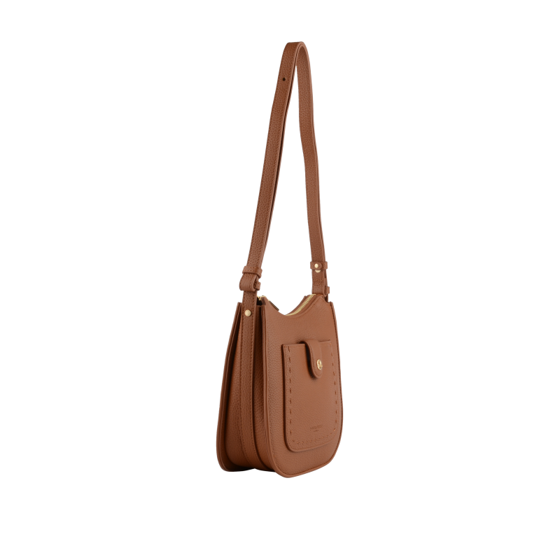 Le sac Bride Soft est un porté travers au coloris camel, conçu par la marque Pourchet. Réalisé en cuir texturé, il offre une allure élégante et moderne, parfaite pour compléter vos tenues.