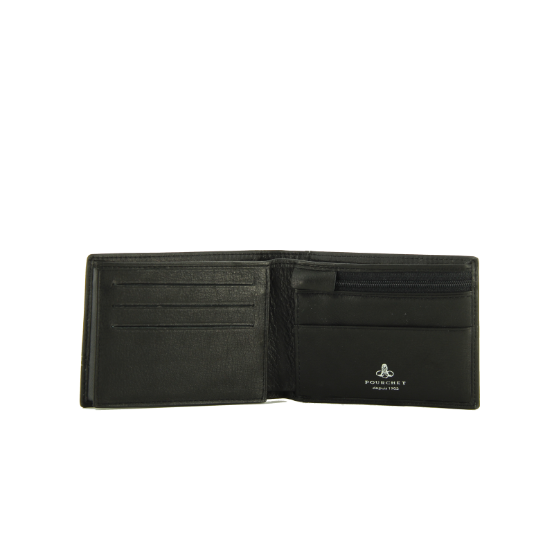 Le portefeuille noir Métropol est l'accessoire incontournable pour l'homme moderne à la recherche d'un mélange parfait de style et de fonctionnalité. Confectionné en cuir de vachette, il offre une texture douce et une durabilité exceptionnelle, tout en affichant une allure classique et intemporelle.