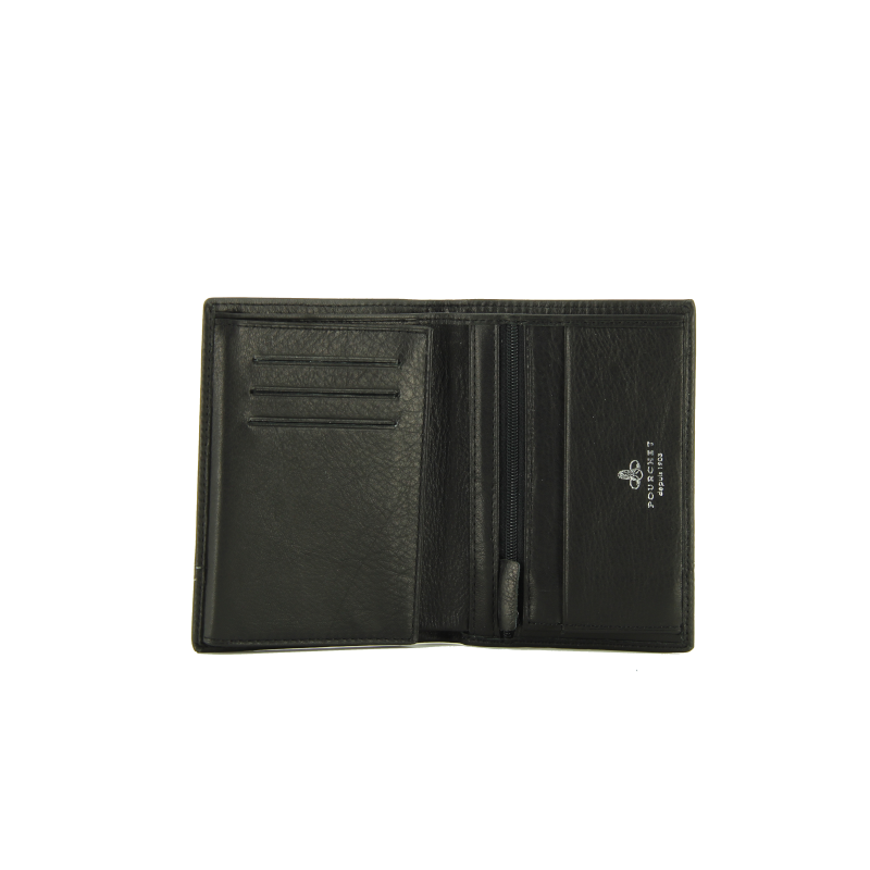 Les coutures soignées et le logo de la marque Pourchet discrètement embossé à l'intérieur témoignent de la qualité de fabrication de ce portefeuille. Bien que le modèle présenté soit en noir, il peut également être disponible dans d'autres teintes classiques, comme le marron ou le bleu marine, selon les collections.