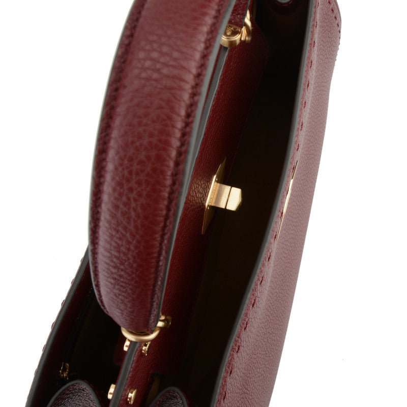 - Protection : La base du sac est dotée de pieds en métal doré, protégeant le cuir des surfaces tout en ajoutant une touche de luxe.