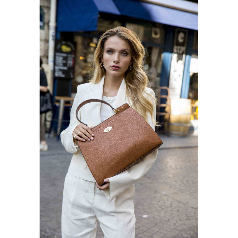 Le sac à main Trianon | GM camel se distingue par son design élégant et sa couleur camel, apportant une touche de chaleur à toutes vos tenues. Fabriqué en cuir de vachette texturé, ce sac offre une finition haut de gamme et une durabilité appréciable.