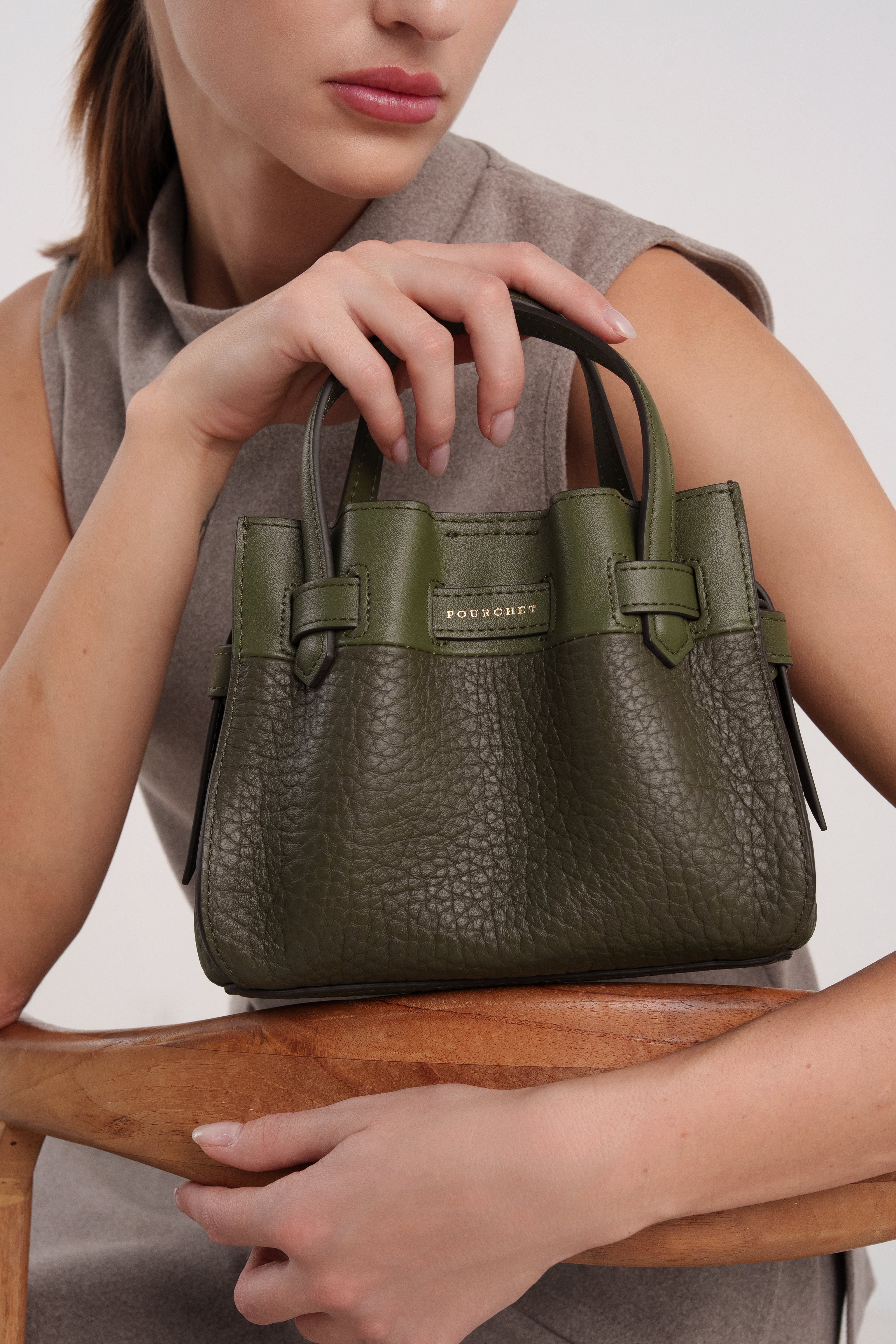 Le sac à main Blossom | PM kaki de la marque Pourchet allie élégance et fonctionnalité. Confectionné en cuir texturé, ce sac structuré est idéal pour un usage quotidien tout en ajoutant une touche de style à vos tenues.