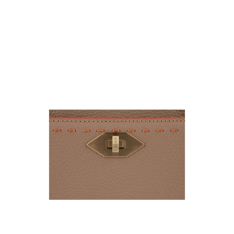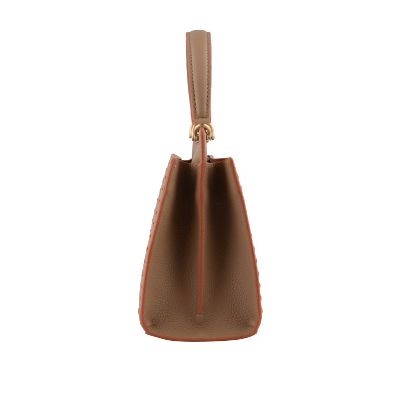 Fabriqué en cuir de vachette texturé, ce modèle est à la fois durable et élégant. Sa silhouette structurée présente des lignes nettes et une base légèrement élargie, lui conférant une forme trapézoïdale qui s'adapte parfaitement à un usage quotidien.
