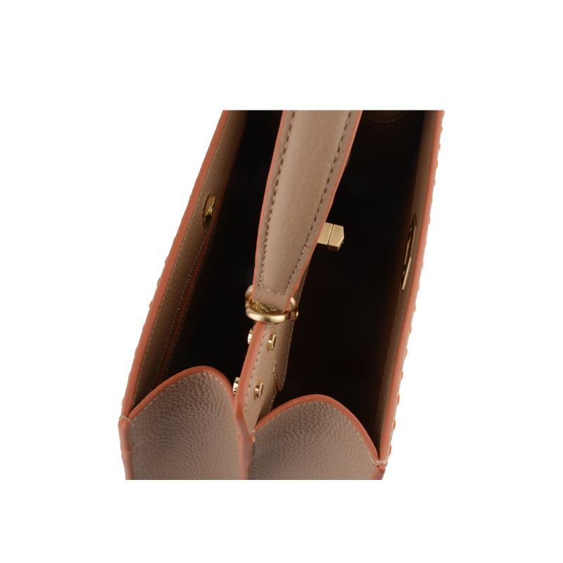 Le sac Trianon Bicolore - MM de la marque Pourchet est un véritable intemporel, alliant chic et raffinement. Conçu dans une élégante combinaison de couleurs mastic et orange, ce sac à main se distingue par son allure sophistiquée et sa fonctionnalité.