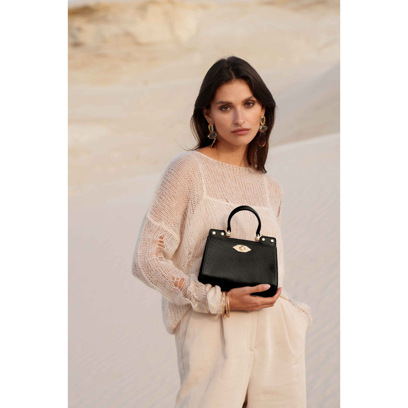 Conçu en cuir de vachette, ce sac se distingue par sa texture agréable au toucher et sa durabilité. Sa silhouette structurée et ses lignes nettes lui confèrent un aspect moderne et raffiné, tout en restant compact et léger, idéal pour transporter l'essentiel.