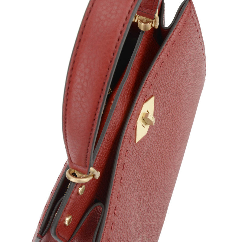 Le sac à main Trianon | MM rouge de la marque Pourchet est l'accessoire idéal pour ajouter une touche d'élégance à votre tenue. Confectionné en cuir de haute qualité, il se distingue par sa texture légèrement granuleuse qui lui confère un aspect sophistiqué.