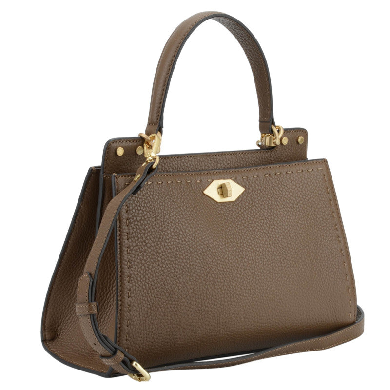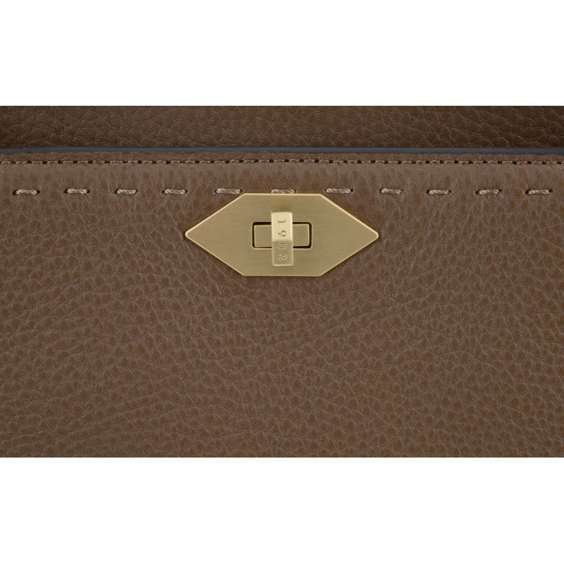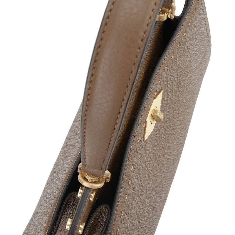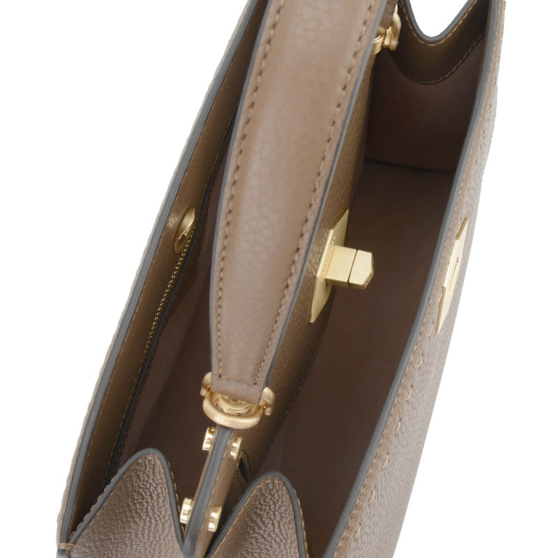 Le sac Trianon MM Taupe dispose de dimensions pratiques de 29 x 21 x 10.5 cm, parfait pour un usage quotidien. Il est équipé d'une poignée supérieure pour un port à la main et d'une bandoulière amovible et réglable, permettant un port épaule ou croisé selon vos préférences.